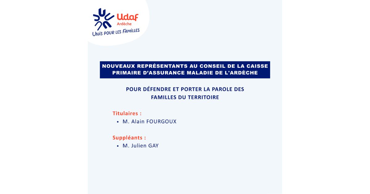 Sur désignation de l’Union Départementale des Associations Familiales de l’Ardèche, les personnes désignées en tant que représentants sont :